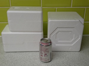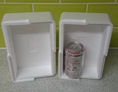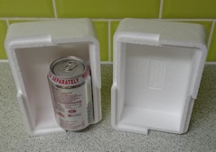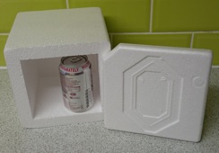 Made from white expanded polystyrene. Two interlocking identical part design. This box has been used and may show some tape marks and have other minor imperfections – but its is clean and serviceable.